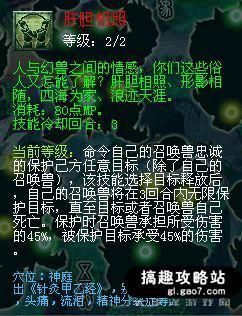 肝胆相照:命令自己的召唤兽忠诚的保护己方目标(除了自己的召唤兽),该技能选择目标施放后,自己的召唤兽将在3回合内无限保护目标,保护时召唤兽承担所受伤害的45%,被保护目标承受45%的伤害。简单讲这个技能也足够BUG了,有效的保证了自己某个单位的生存能力,可以防止点杀,并可以使己方大唐在速度低于对方大唐速度的同时顺利出手,也可以有效的防止中死亡的单位倒地。