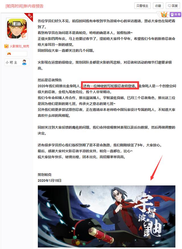 大家应该还记得在春节前帕克有过一次专访预告,里面提到过一个神秘写轮眼忍者,其实在当初那个时间段,我跟很多玩家一样都认为这个神秘的写轮眼就是新春鼬,但是,后来我才发现,其实并没有那么简单,我们先来看下图这个帕克的预告,既然是提到了2020年内会有神秘的写轮眼忍者登场,下面直接放了一个新春鼬的招募图片,这还神秘个P啊?哪里还有神秘感啊?