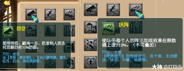 说到PK中的应用,如果平戳,那么没必中武器是没那自信的,没满天的平戳显然没有特技和翩鸿一击来的实在,于是此时的适应性就比较低了,不如第一丹另二个位置,左一的目空提升自己的破防能力,右一的扶阵利人利已,这2个位置都是不错的PK经脉选择!
