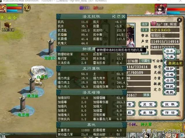 这就是那位号称13抗的魔,一起来看看他都抗些什么吧,从头开始数,抗风101、抗火100、抗水100、抗雷100、抗混143、抗冰148、抗昏睡114、抗毒100、抗震慑48、抗遗忘118、抗鬼火100、抗三尸虫5600、抗物理124,一心仔细数了一下的确是13抗,而且还是大力35万血、8万的攻击、这图P的吧?
