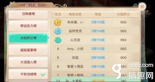 水陆积分榜