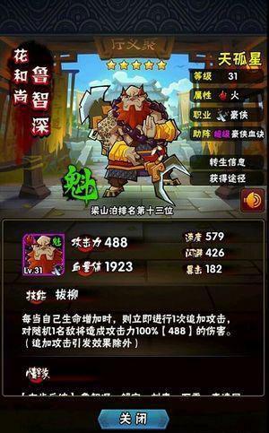 第三个技能,晕杀阵的核心。技能:对默认目标造成攻击力160%的伤害,并造成眩晕效果,持续两回合。代表人物:阮小二,栾廷玉,栾廷玉在攻击力上是完胜阮小七的。但是阮氏三雄大家都听过,晕杀阵中的豪侠是阮小七的哥哥阮小五啊,那么阮小七就靠着哥哥的关系成功上位啦。