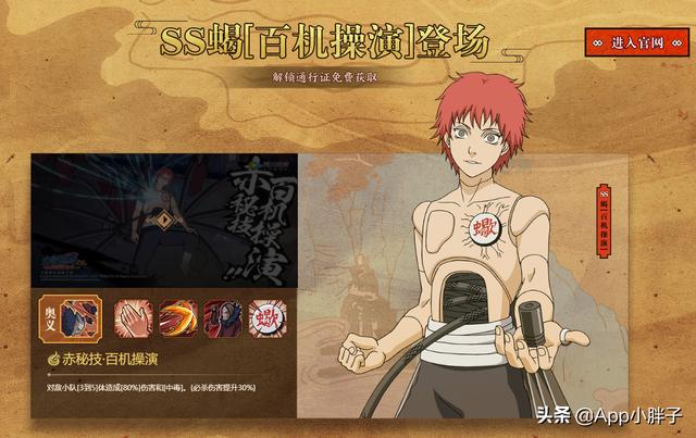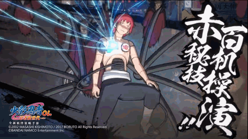 这个百机蝎在《火影忍者OL》手游里的定位是双S忍,同时,技能的效果。。。似乎有点凌乱,OL里的忍者技能效果有的要比《火影忍者》手游里酷炫,但是这个百机蝎的效果并不如《火影忍者》手游。