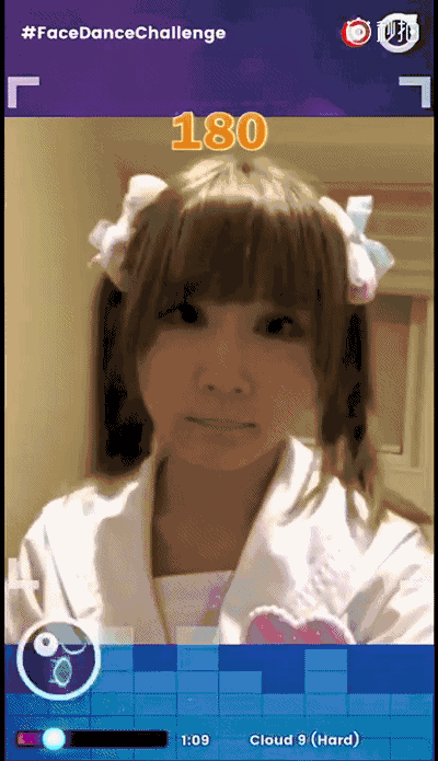 游戏的特色,是通过智能手机的前置摄像头进行面部动作捕捉,好像跳舞机那样靠表情来完成下落的“表情”音符,从而达到游戏的目标。这是在声控游戏《不要停!八分音符酱♪》之后,又一款从玩家中流行起来的创意游戏,而且极具话题和传播性。这不,不少大咖已经“舞”出了处女show。