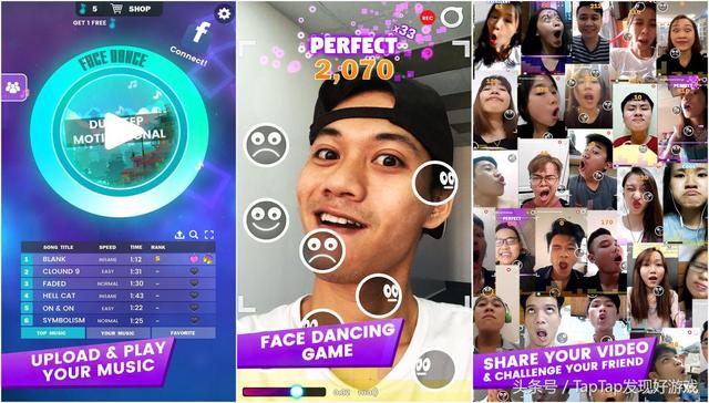 此外游戏还支持导入音乐的自定义功能,上传本地音乐就能通过游戏的内置引擎分析任何一首歌曲,生成一首全新节奏音符可“颜艺”的曲子。同时,游戏还支持内录模式,在一首即兴的颜艺演绎之后,可以分享到社交圈观看自己的“脸舞”表演。