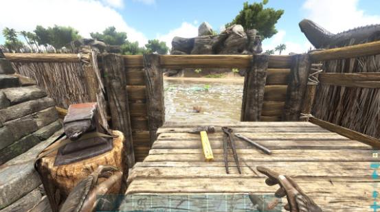 因为运输船地图不可能放置于海上,这些CF老玩家们就在海滩边上的一个空地上直接用架子将预计建造的运输船腾空起来,以便达到在CF中一样的视觉效果。然后使用猛犸象采集了大量的资源开始在《方舟:生存进化》手游里建造运输船。