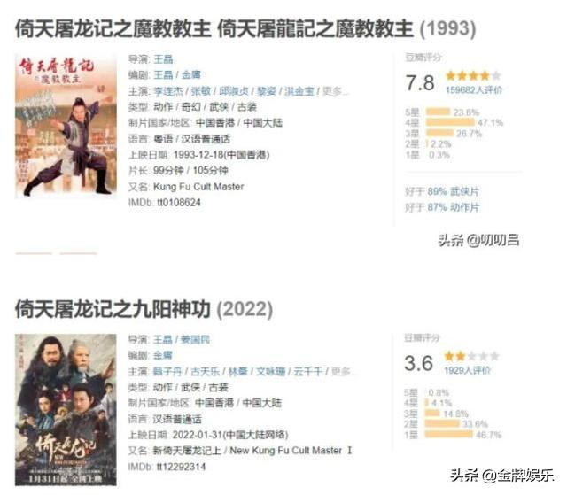 之前李连杰版本的评分高达7.8分,如今新作上映,却只有3.6分,差距那可不是一般的大