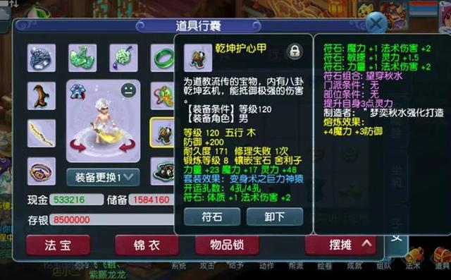 如果预算真的不够,链子、衣服、灵饰均再降低一个标准的话,也可以无符1650法伤,那样大概1000R就可以配的出来。平时打个符刷任务,29法系有个1700+法伤秒出去都不难看了,临时符是我们难民玩家提升属性最具性价比的,1万5一张的150级符,每天打2张就可以。