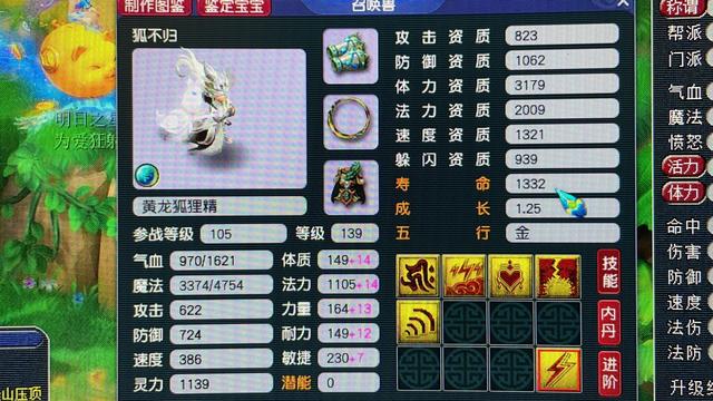 现在无论是打服战还是帮战,很多的土豪玩家都换上了出其+须弥的全红法宠,动不动都是进阶110灵性。这只狐不归就很暴力,而且最夸张的是,它不是用来打PK的,特意套装选的是敏法双加属性,就为了刷任务时出手速度快一点。套装选的也不是高级神佑而是高级敏捷。2009的法资、1.25的成长,全魔加点后有1139的灵力,出其不意再加个15%输出,暴力是绝对的。