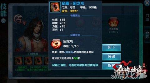 秘籍效果:增加困龙功造成定身的时间并减少冷却时间。