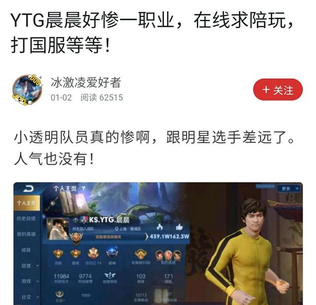而YTG晨晨虽说是选秀状元,可是赛场上的成绩并不理想,所以自身的人气也并不高,工资自然而然不会太高,不过一个月几万是肯定有的,几万的工资对于很多人来说已经不错了,那么为何晨晨会在线求接单呢?