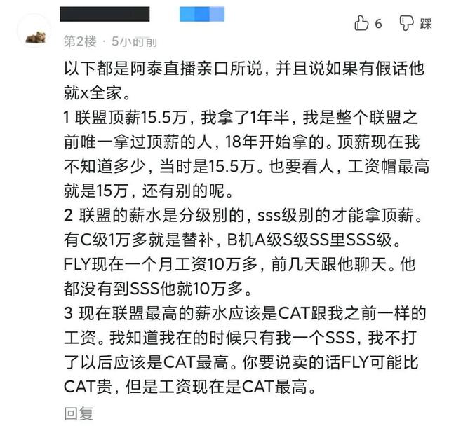 职业选手的工资并没有大家想象的那么多,由于联盟给职业选手做了一个等级划分,只有SSS级的职业选手才能拿到顶级工资,根据职业阿泰透露的,的SSS级职业选手的工资是15 W左右,什么叫SSS级呢?打的好人气还高就叫SSS,而一些没有人气的选手,或者说替补,一个月工资仅有一万左右。还记得久诚就是因为工资和直播收入超过了联盟规定被禁赛了。