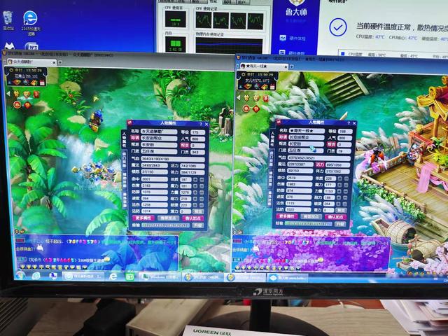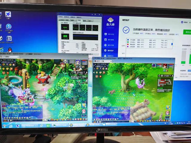 三开测试的是上面的双五庄加168医生,打宝图不能胜任,切换场景cpu最高占用100%,内存占用85%,应该是显卡拖了后退。三开跟车捉鬼,烧双完美运行。切入战斗无卡顿略有拖影,刷了个乌鸡国和平顶山,游戏体验良好。