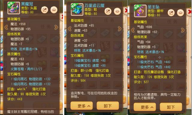 而头盔、鞋子与腰带部位所搭配的同样也是80级装备,除了较高的属性提升外,还均携带了法术暴击特效,能够让角色在战斗中拥有更强的爆发力,对于法系玩家来说,这套装备还是非常实用的,虽然不足以跻身一线,但也超过了大部分勇武法系角色。
