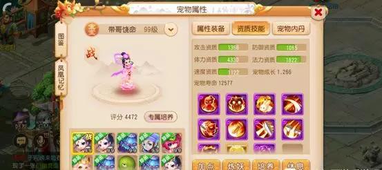 第二只宠物是一只9技能的芙蓉仙子,这只宠物的资质同样不俗,虽然1366的攻击资质、1065的防御资质与4330的体力资质并不是特别出色,但好在成长达到了1.266之高,可以对资质的不足做出一定的弥补。在技能方面这只宠物走的同样是隐攻路线,除了攻宠常备的技能外还有高级强力、高级突进来进一步提升输出能力,同时还有高级反击、高级感知来提升生存能力,整体实力强悍!并且这只芙蓉仙子还有专属套装效果,在战斗中当己方有大于3个被封印单位时,召唤出场有50%概率给封印单位解除封印,在战斗中实用性极强。