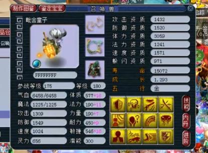 这只11技能的童子,看一下资质简直是爆炸。攻击资质1675点的是太好了,防御资质也有1502点呢。成长1.297已经和满成长没有什么差异了。再一看技能是10个全红还有力劈华山和壁垒击破,这种召唤兽完全是可以使用上服战的,因为技能太少也是被爆总所嫌弃了。