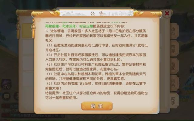 家园玩法一直是大家在战斗之余放松心情的好途径,而现在全新的社区玩法已经在先行服务器开启测试了!小伙伴们可以在傲来渔港的建房吏处邀请拥有家园的好友一起入住社区,只要在3天的申请有效时间内凑够5个家庭就可以开启社区了。