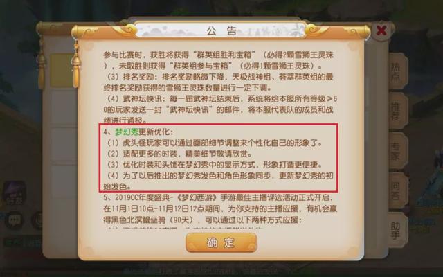 最后就是梦幻秀的更新优化了,千呼万唤始出来的虎头怪捏脸终于来临,不知道又会有多少艺术家创作出各种独具特色的虎头怪捏脸呢?让我们期待一下吧!