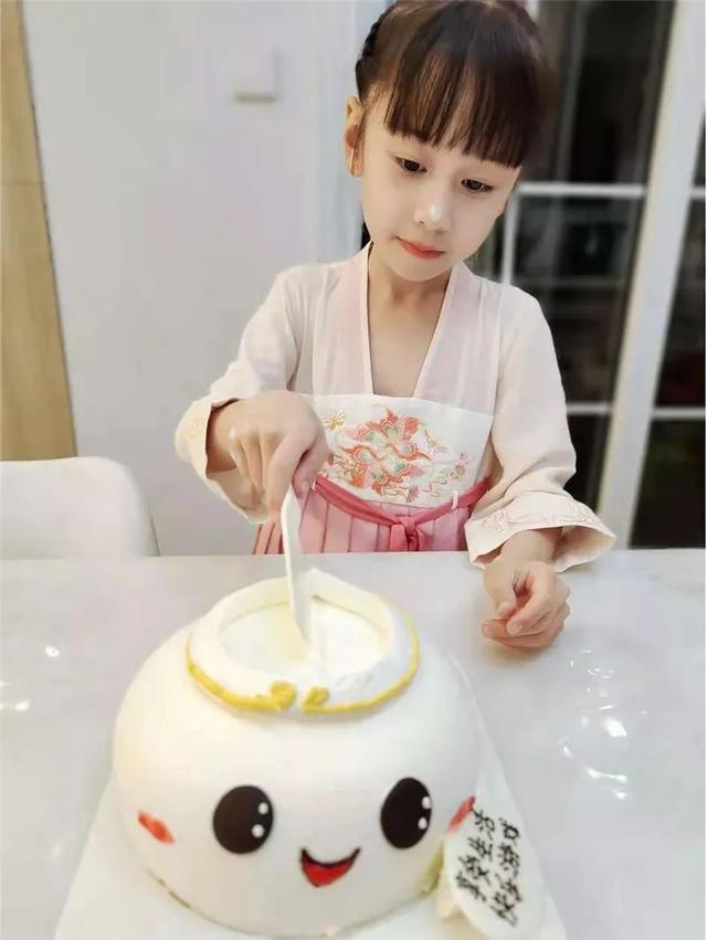 穿着官方出的鎏金汉服童装