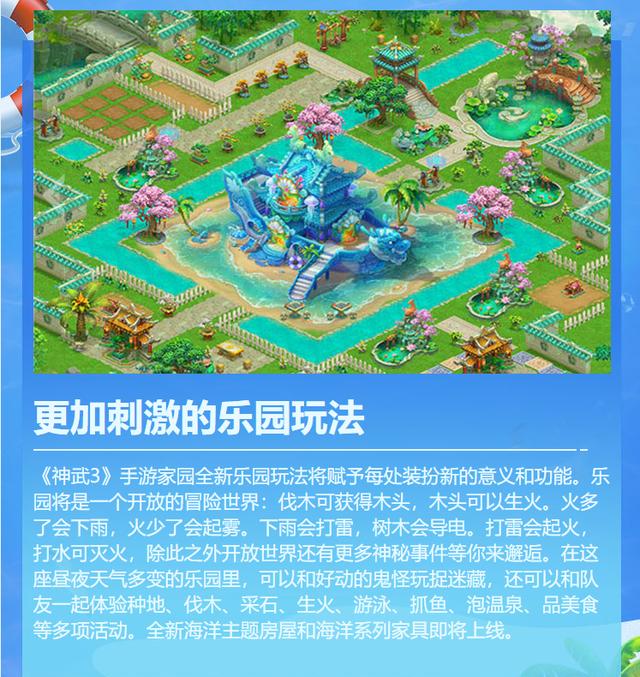 除了新海洋风格装饰道具和全新的"乐园"系统以外,本次《神武3》手游的暑假主题内容"海洋乐园"在未来还会持续给玩家们带来海洋坐骑、海洋时装等新的惊喜。各位对园林艺术设计感兴趣的玩家们,准备好来新"家园"系统中设计属于你的庭院了吗!