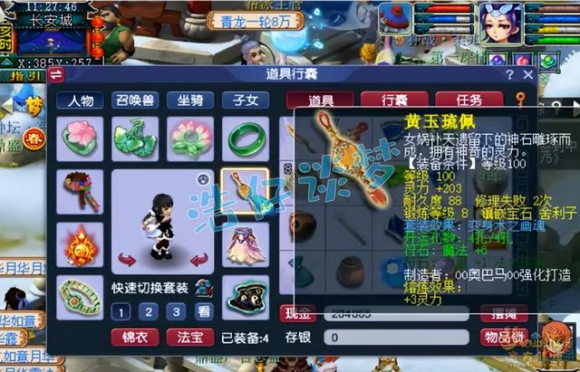 100级画魂套腰带,跟鞋子是同样的道理,速度已经很快了,所以没必要打黑宝石,打光芒石增加气血就可以。