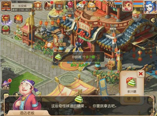 首先就是不给糖就捣乱了,大家每天可以找任意5个NPC讨要糖果,同时参与师门、捉鬼等日常活动时也有几率掉落糖果。食用糖果不但可以获得节日积分,达到一定数量还可以获得特别的节日称谓!