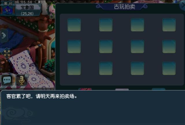 现在还有玩家去宝象国玩考古盘子的吗?在古董盘子中每一个未鉴定的盘子的售价是十万梦幻币,拍卖出去以后有可能会获得一两百万,只不过现在拍卖获得高额梦幻币的几率要比以前降低了很多,上面的这位玩家就上头了,但是当她发现自己亏了几百万想继续的时候系统却不让他玩了,这是因为古董盘子是有数量上限的,每一个角色每天只能拍卖50个。