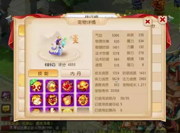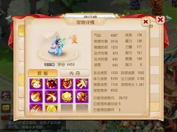 继续来看看9技能全红的咕噜咕噜,这只宠物的资质更是不得了,将近5300的体力资质,1458的防御资质,3220的法力资质,这也太高了灵儿惊了!
