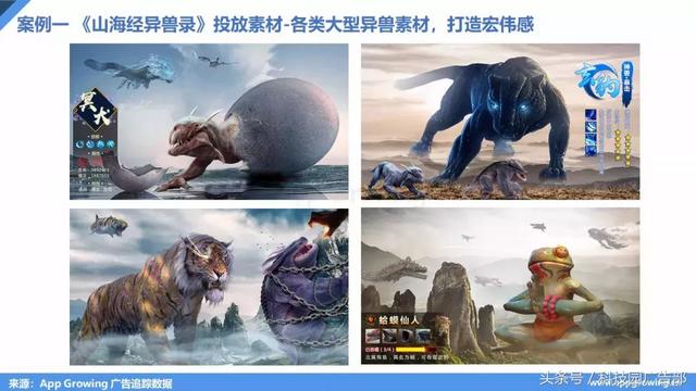 4、买量头部手游投放案例解析:看国漫风山海经题材游戏《山海异闻录》如何在山海经鲲系巨兽文案中脱颖而出。