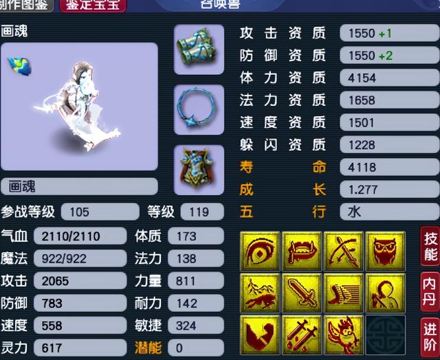 再来看看底子,几乎是达到了一个完美。攻击和防御都是超过了1500点,就连速度资质都有1501点。配上高伤害的善恶套,不要太舒服了。