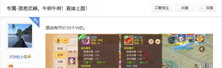 在此前,就有玩家分享过一把以25万高价成交的极品武器,震惊三界,而近日,又有一位玩家发现了一把高伤专属神兵,据说价格已经开到了35W之高!这把极品的武器的属性如何呢?让我们一起来瞧瞧吧!