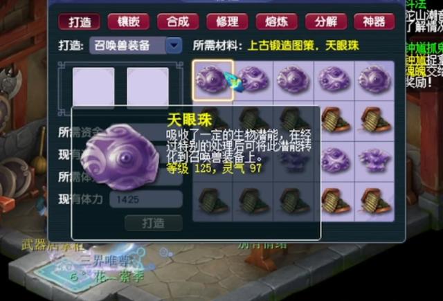 当然了,打造宝宝装备跟打造人物装备相比较,相对来说就简单了许多。只要有天眼珠、上古锻造图策就OK。众所周知,天眼珠的眼数越多、灵气越高,越容易打出极品的宝宝装备!因此,高灵气的天珠眼也是玩家们打造宝宝装备时的首选材料。今天,这位玩家就要来打造一波宝宝装备!这位玩家准备得非常充分,不仅有天眼珠,还有三眼天珠和九眼天珠。而且,灵气都非常的高。