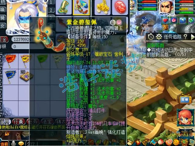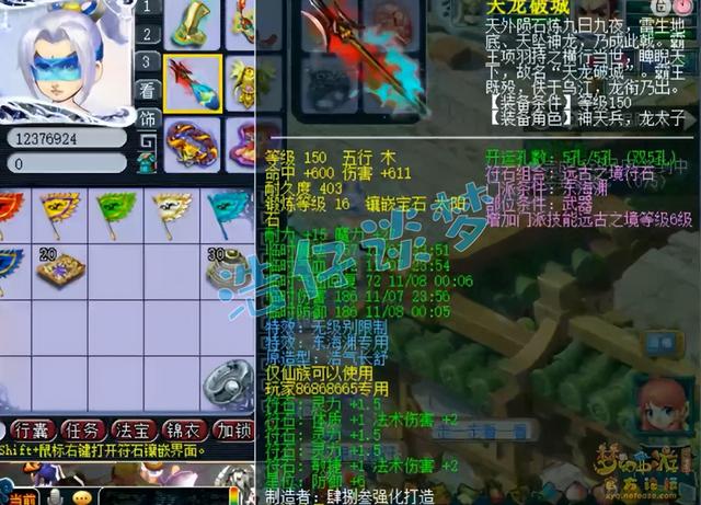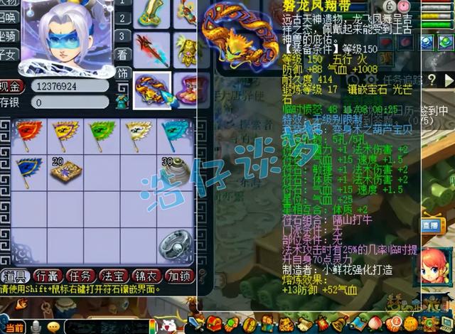 150级无级别葫芦宝贝套腰带,打了17锻光芒石。