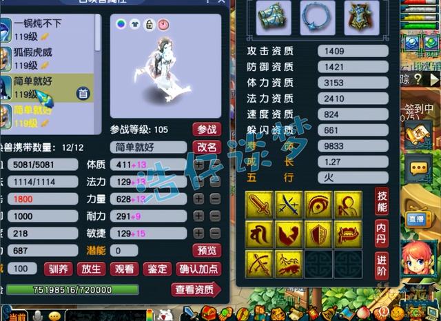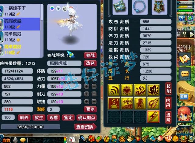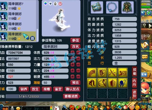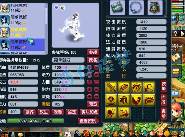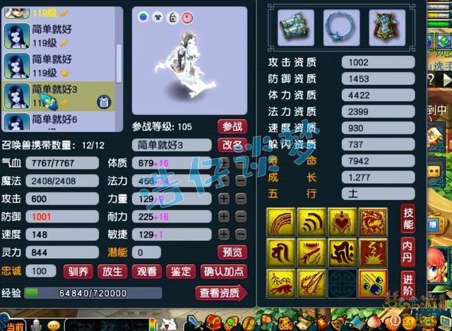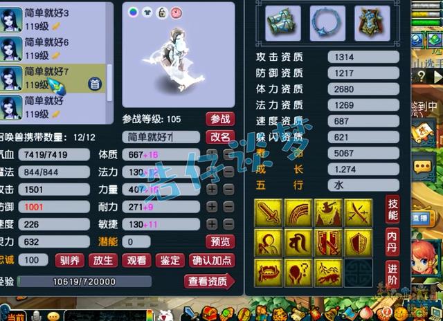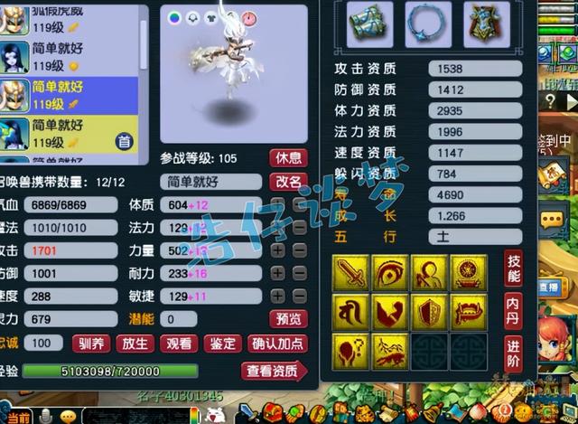 11技能净台力劈壁垒画魂,这只成长很高,资质差很多,得养两年。