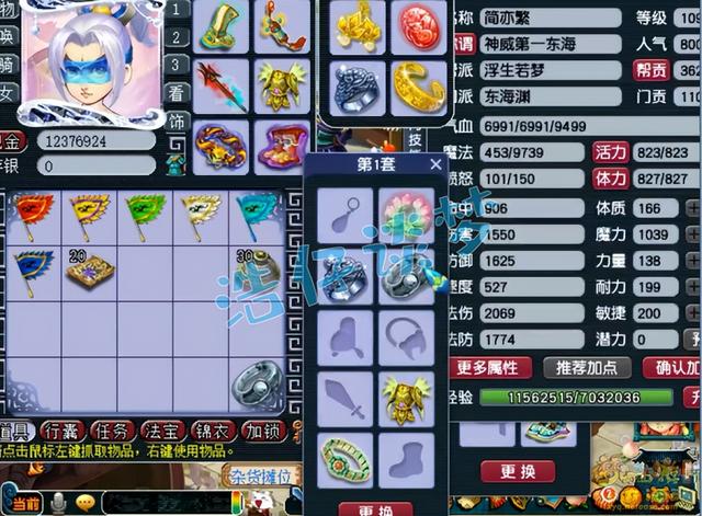 109级东海渊打符之后的面板属性,法伤达到了2069,这还是不带神器的属性,因为东海渊门派没有神器,如果再有一个神器,法伤简直恐怖!