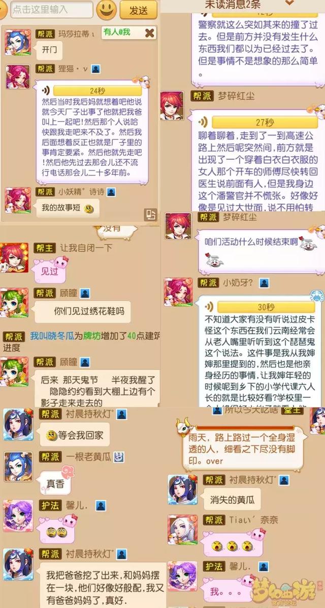 在帮派重新活跃了起来之后也差不多到了一年一度的万圣节了,气势如虹帮派组织了一次万圣节“鬼话派对”!在活动开始的当天晚上,帮会成员纷纷贡献出自己的“故事匣”——鬼故事、灵异故事,还有自己的亲身经历,给了大家很多的思考!前方高能,灵儿提醒各位胆小的小伙伴们谨慎阅读唷~