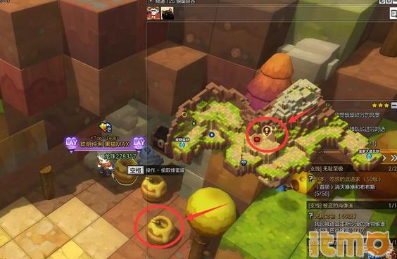 在地图蜿蜒峡谷精英怪物金刚熊后面打开蜂蜜罐,并品尝