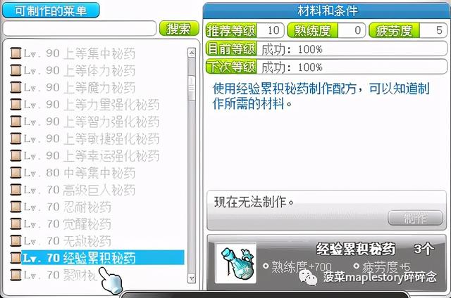 玩家有条件的情况下,还可以通过购买无敌秘药经验秘药配方学习来制作对应药水进行提升熟练度: