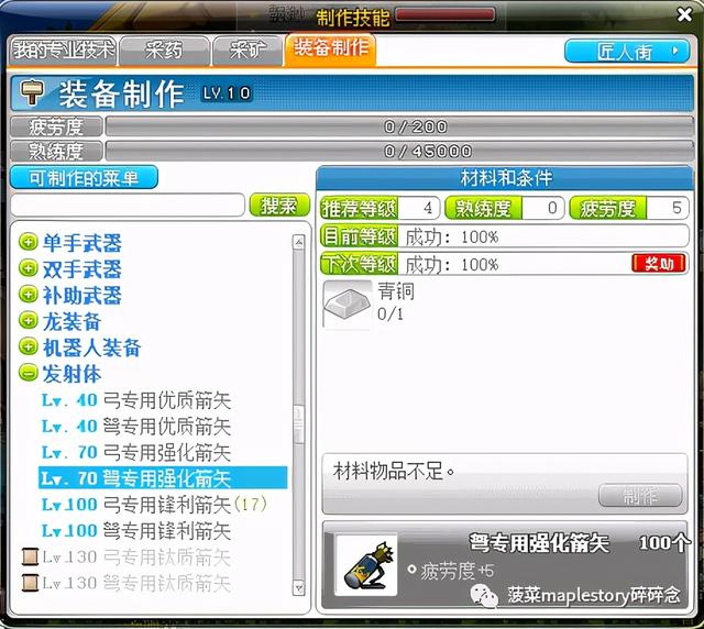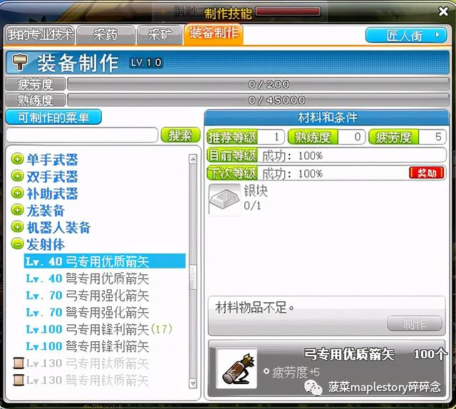 装备1-10级前期基本上如果想通过最节约成本的方法就是做箭矢,装备制作前期升级会快一些,分三个阶段。