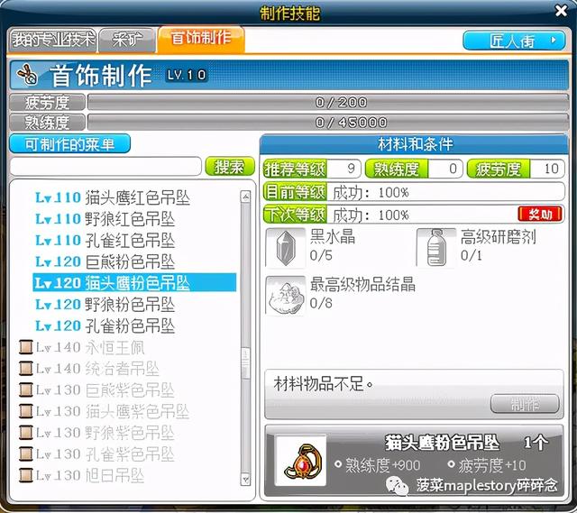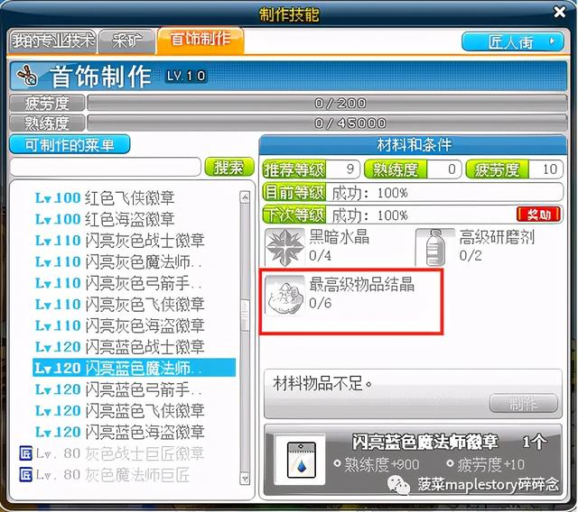 当饰品制作10级以后开始升级饰品名匠,只有做8级以上的饰品才会升级经验,由于8级大部分饰品需要的材料不可避免包含了高级物品结晶: