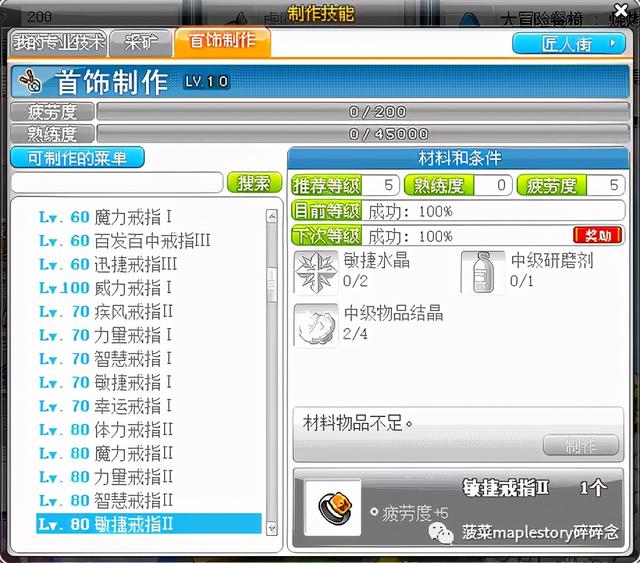 先说下饰品制作如何快速到10级,一般尽量做不需要怪物结晶的戒指,只需要矿石的那种是最划算的,因为成本比较低。