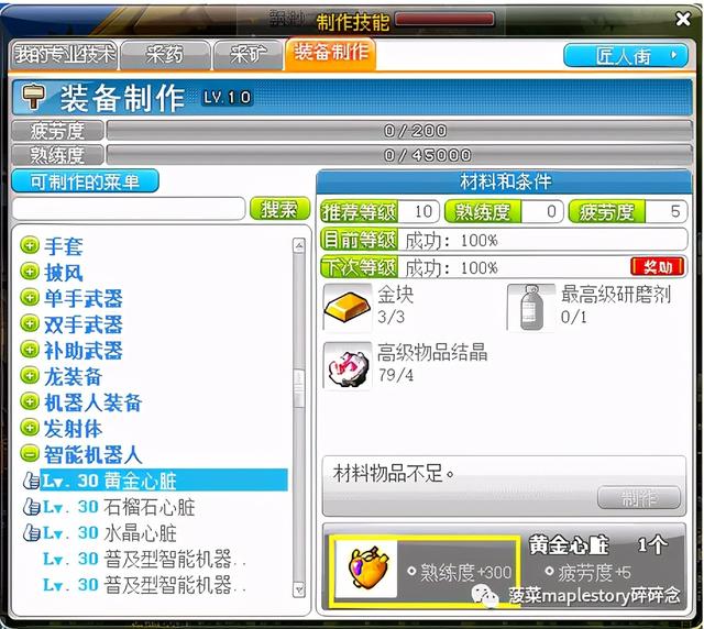 10级以后冲名匠阶段,都需要做8级以上物品,相信大家都想到了一个东西(心脏),没错心脏也是加熟练度的,因此可以通过做心脏来加熟练度的同时回点血: