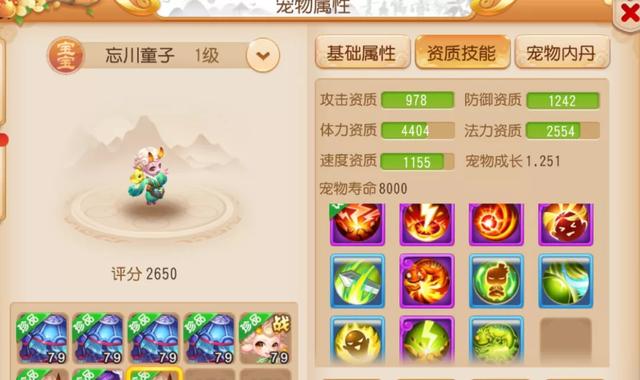 这只宠物有着2554的法力资质与4404的体力资质,虽然不是特别突出,但也能够接受。