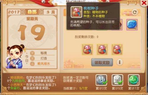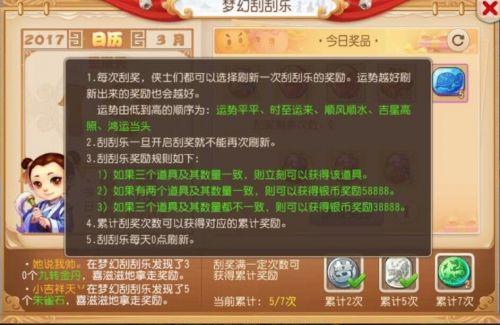 在这过程中,如果玩家刮出了三个名称和数量都相同的道具,即可获得对应物品奖励,反之则获得一定银两作为鼓励金。除此之外,玩家刮奖累积满一定次数,更可以获得累积奖励。