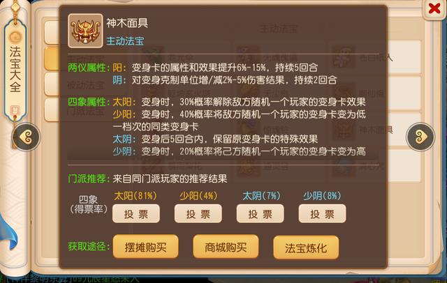 但遗憾的是,这个持续时间实在太短,如果能够达到5回合,说不定就能让神木面具成为主流法宝之一。