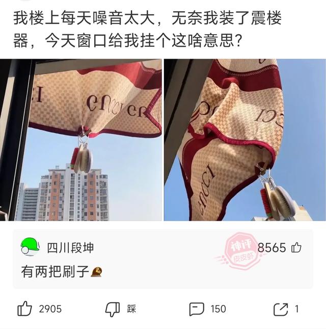 【沙雕问题4】我楼上每天噪音太大,无奈我装了震楼器,今天窗口给我挂个这啥意思?