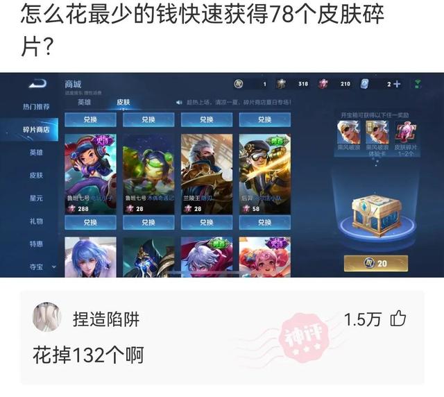 【沙雕问题8】怎么花最少的钱快速获得78个皮肤碎片?