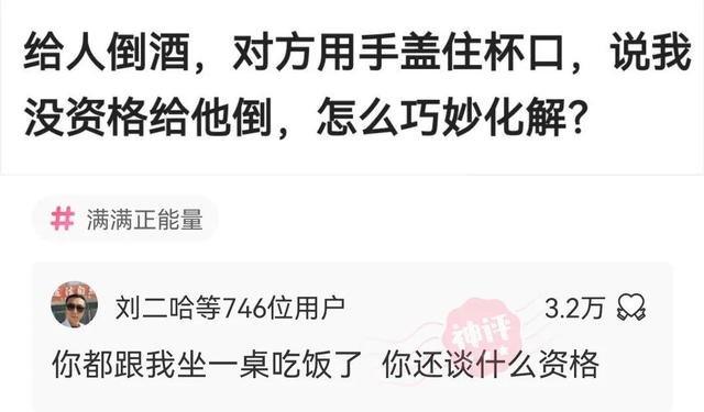 【沙雕问题2】给人倒酒,对方用手盖住杯口,说我没资格给他倒,怎么巧妙化解?