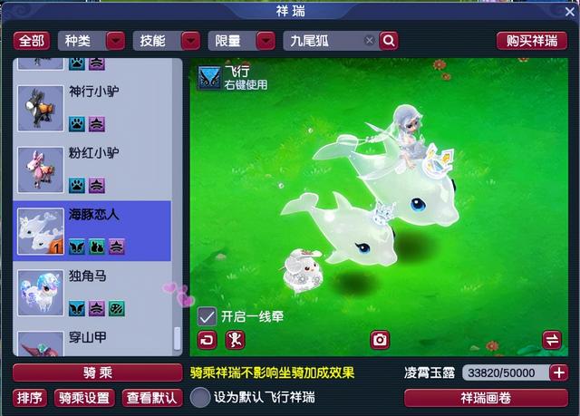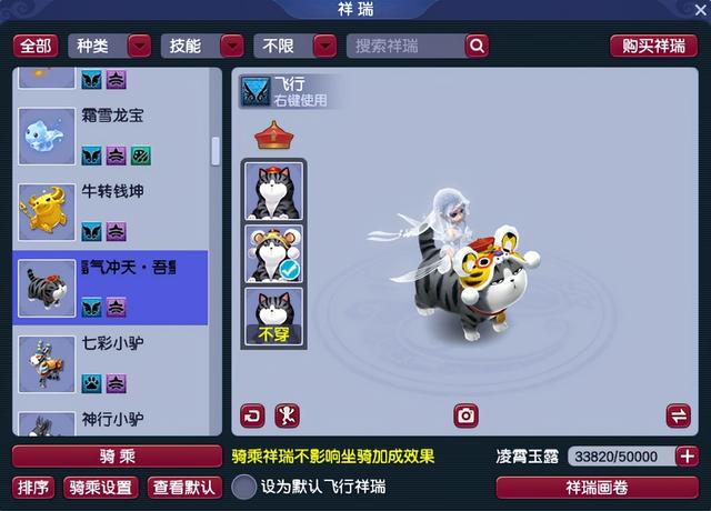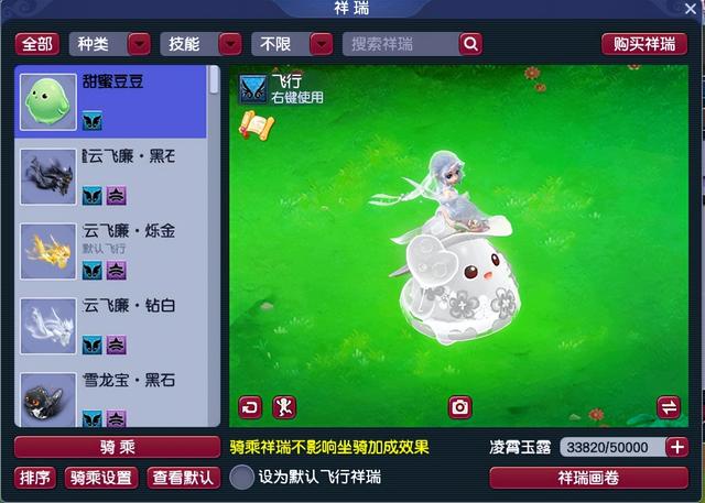 首先搭配俏皮可爱的甜蜜豆豆,玩家坐在祥瑞上面,给人一种清纯高冷的御姐范。
