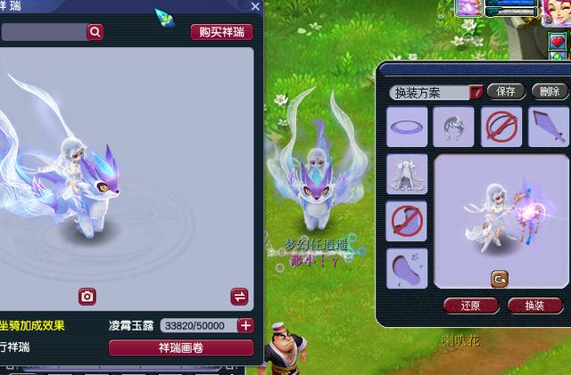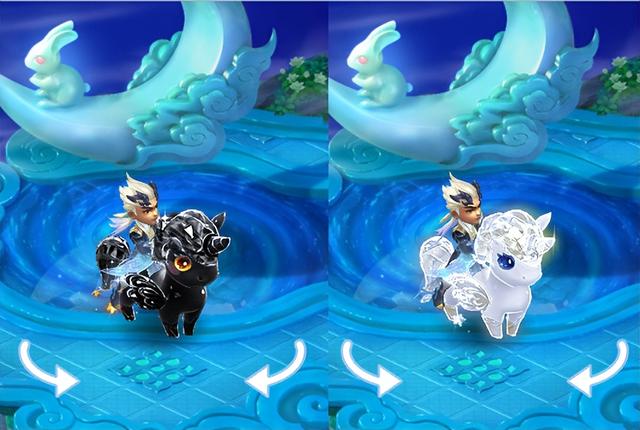 搭配独角马·钻白,整体看起来好像公主一般。当然了,毕竟沧溟谣·归墟锦衣整体的颜色较淡,所以祥瑞除了选择同色系之外,也可以选一些颜色较深的。